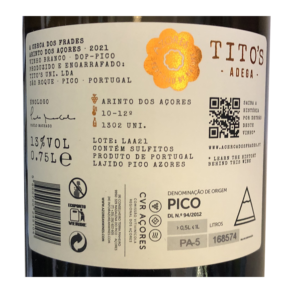 O A Cerca dos Frades - Vinho Branco, com 750ml é um Vinho Branco produzido em Portugal - Açores por Tito's Adega.