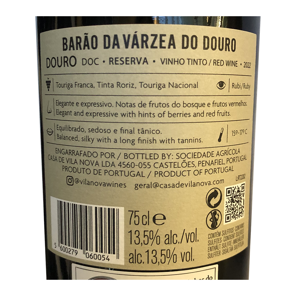 O Barão da Várzea do Douro Grande Reserva - Vinho Tinto, com 750ml é um Vinho Tinto produzido em Portugal - Porto e Douro por Barão da Várzea do Douro.