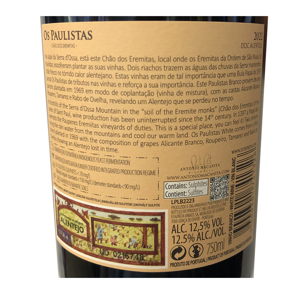 O Chão dos Eremitas Os Paulistas - Vinho Tinto, com 750ml é um Vinho Tinto produzido em Portugal - Alentejo por Fita Preta.