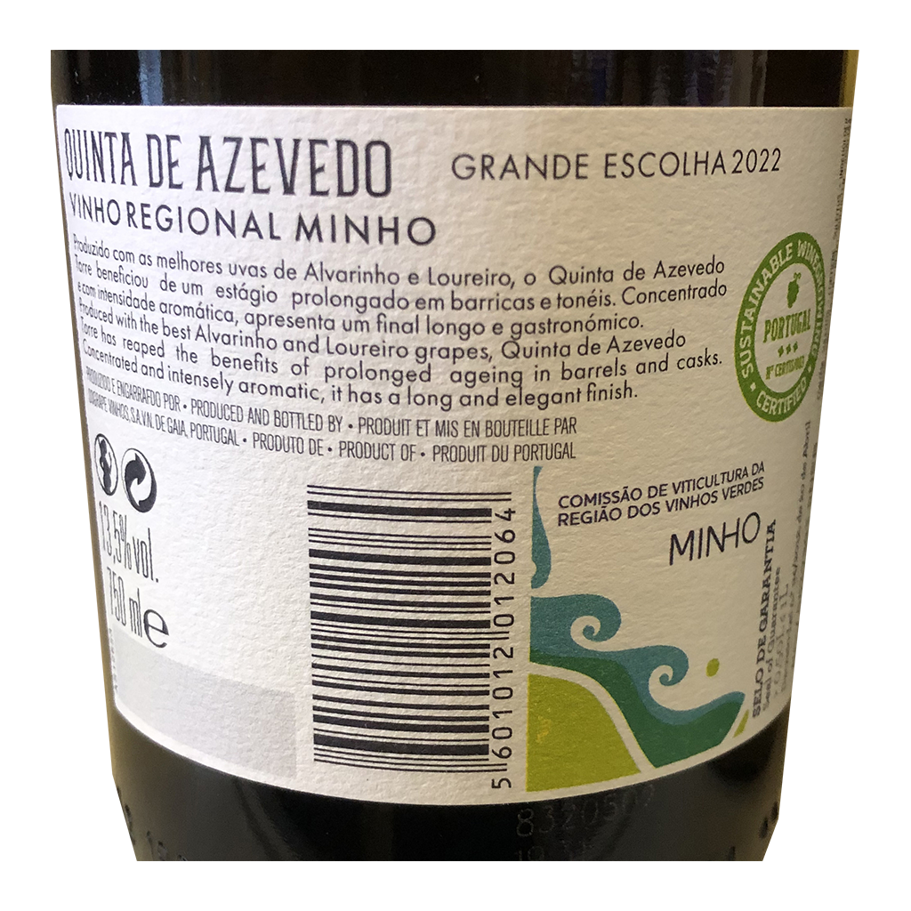 O Quinta de Azevedo Alvarinho Escolha - Vinho Branco, com 750ml é um Vinho Branco produzido em Portugal - Vinho Verde por Quinta de Azevedo.