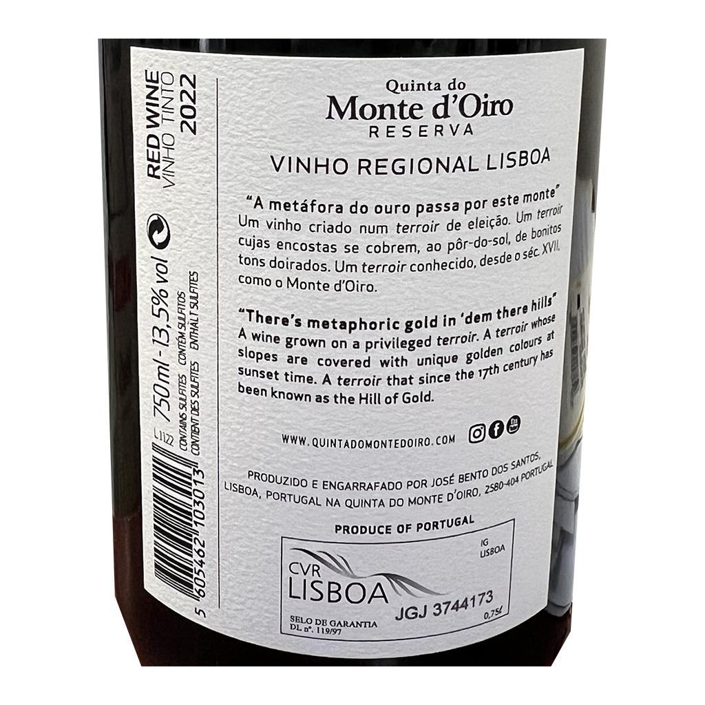 O Quinta do Monte d'Oiro - Vinho Tinto, com 750ml é um Vinho Tinto produzido em Portugal - Lisboa por Quinta do Monte d'Oiro.