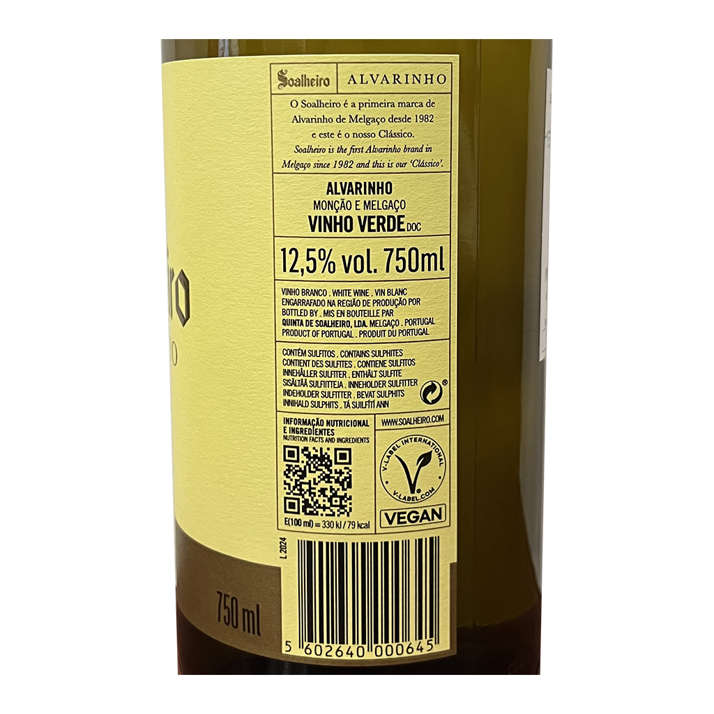 O Vinho Branco Soalheiro é um produto da conceituada adega Quinta de Soalheiro, localizada na região dos Vinhos Verdes. Este vinho é meticulosamente produzido a partir de uvas Alvarinho vindimadas manualmente, garantindo a máxima qualidade em cada garrafa. As uvas são transportadas para a adega rapidamente após a colheita, prensadas e depois o mosto é deixado decantar durante 48 horas a baixa temperatura antes de sofrer fermentação controlada.
