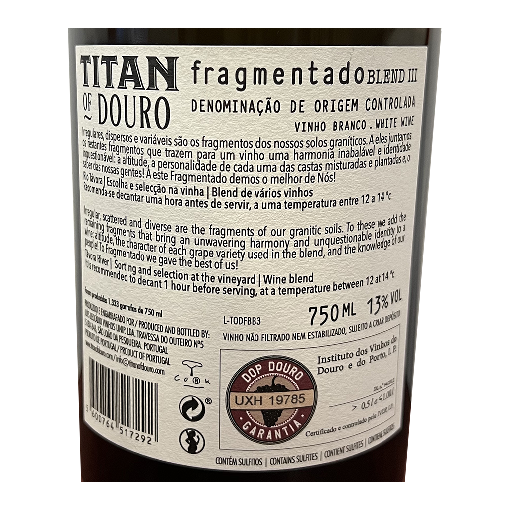 O Titan of Douro Fragmentado - Vinho Tinto, com 750ml é um Vinho Tinto produzido em Portugal - Porto e Douro por TITAN of Douro.
