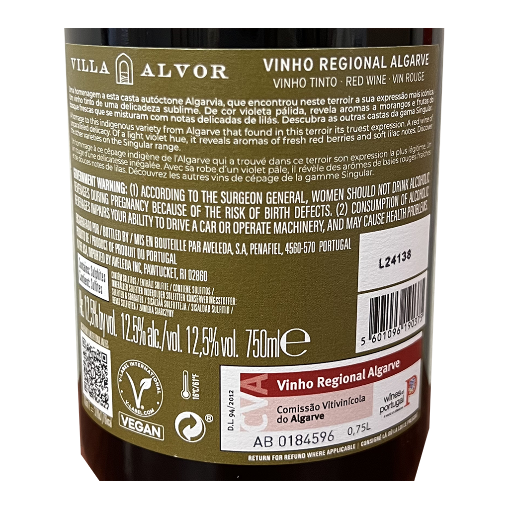 O Villa Alvor - Vinho Tinto, com 750ml é um Vinho Tinto produzido em Portugal - Algarve por Villa Alvor.